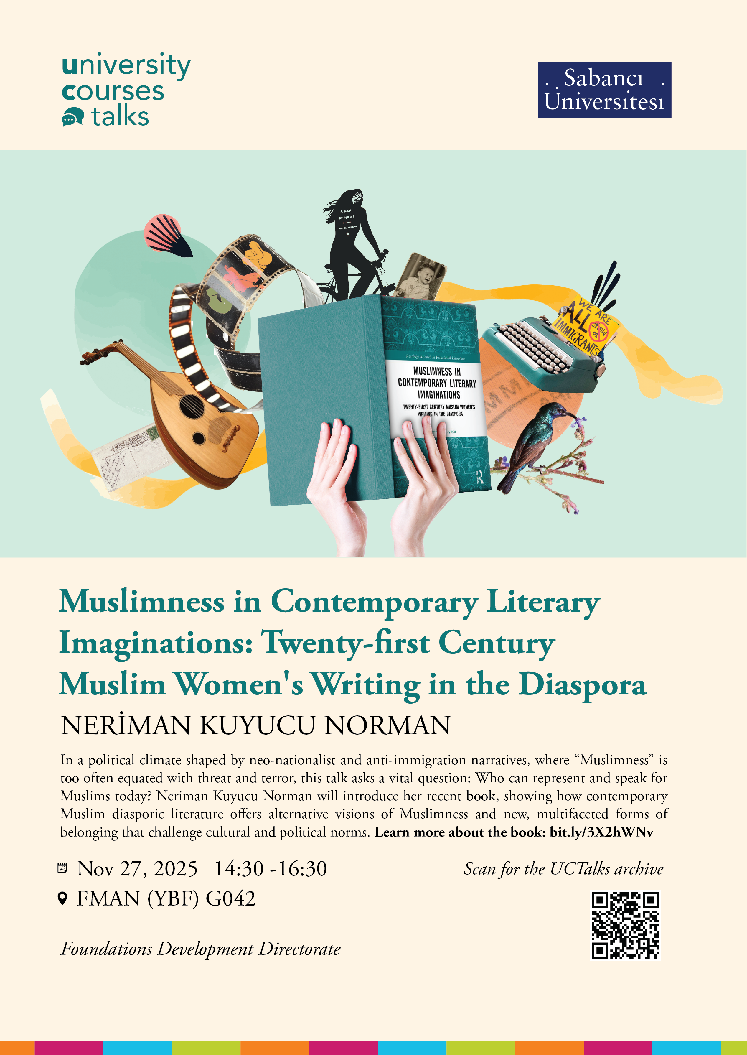 You are cordially invited to the UC Talks session titled "Muslimness in Contemporary Literary Imaginations: Twenty-first Century Muslim Women’s Writing in the Diaspora."
