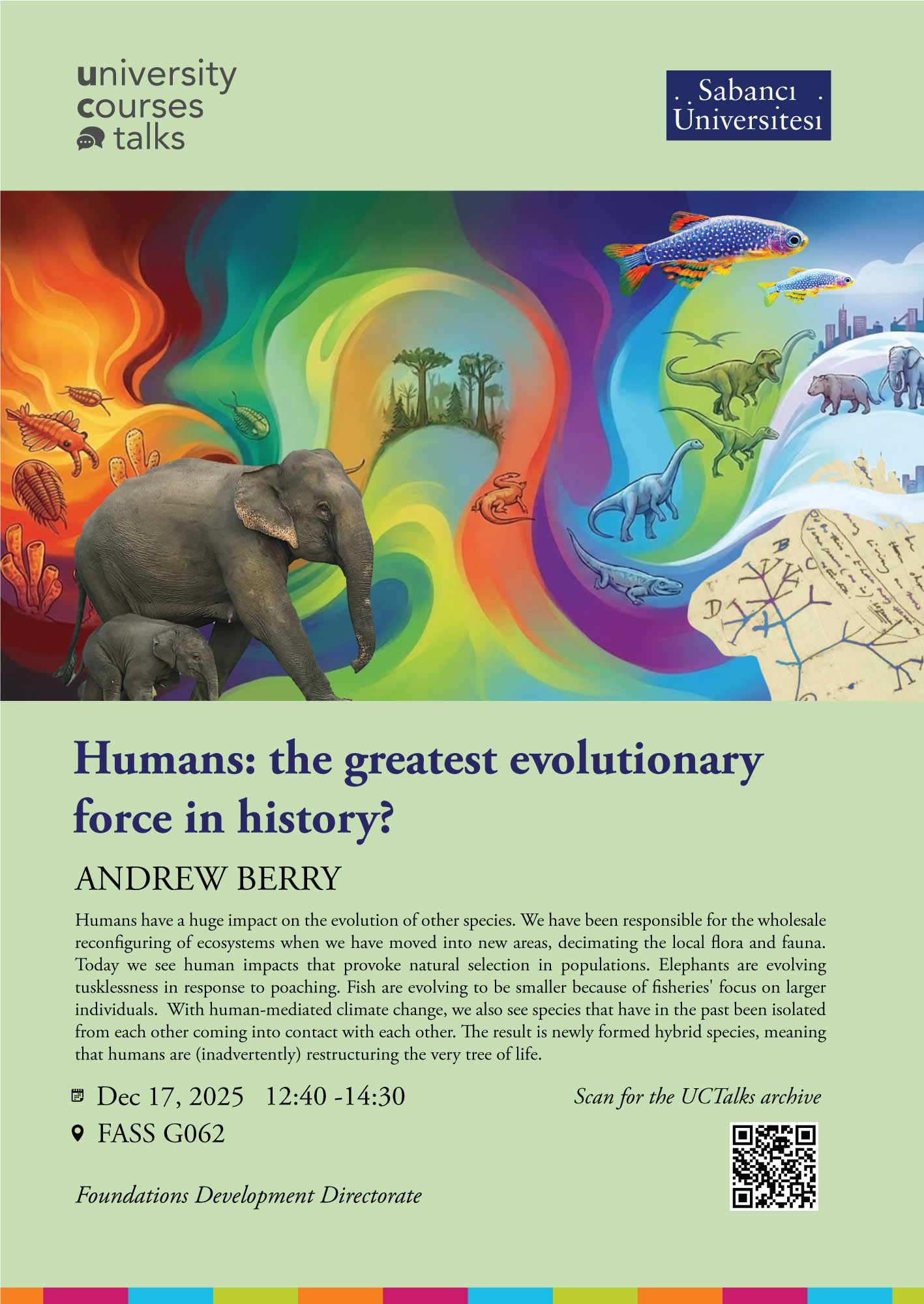 You are cordially invited to the UC Talks session titled "Humans: the greatest evolutionary force in history?"